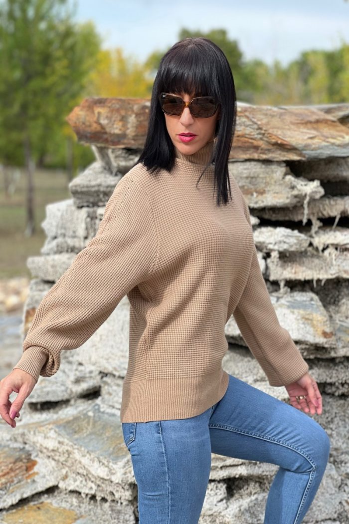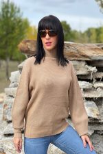 Jersey de un suave tono beige, perfecto para cualquier ocasión. Tiene un diseño elegante con mangas ajustadas que se adaptan al contorno de los brazos, brindando un look estilizado. El cuello alto añade un toque de sofisticación y calidez, ideal para los días más frescos. Este tipo de jersey es versátil y se puede combinar fácilmente con jeans, faldas o incluso debajo de un abrigo. ¡Es una prenda que seguramente se convertirá en un básico en tu armario!